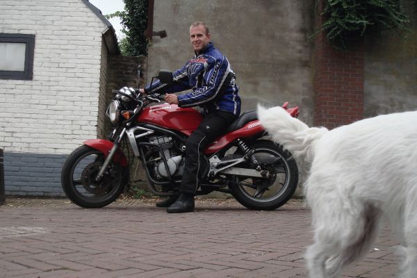Eerst bij je achterop naar het oefenterrein, dat was al even wennen! En niet alleen omdat die vrienden erbij stonden, maar puur de gedachte... Het gaat beginnen!!