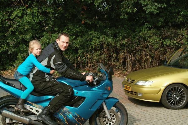 Ehh, nou nee, niet echt Jon, ik heb 14 jaar geleden wel op een schakelbrommer gereden, maar nog nooit op een motor. Na een paar proefjes van Jon kreeg ik dan doodleuk te horen: "Dat komt wel goed, pak maar een jas en helm, dan mag je zelf naar het parkeerterrein rijden." En daar ging ik dan.